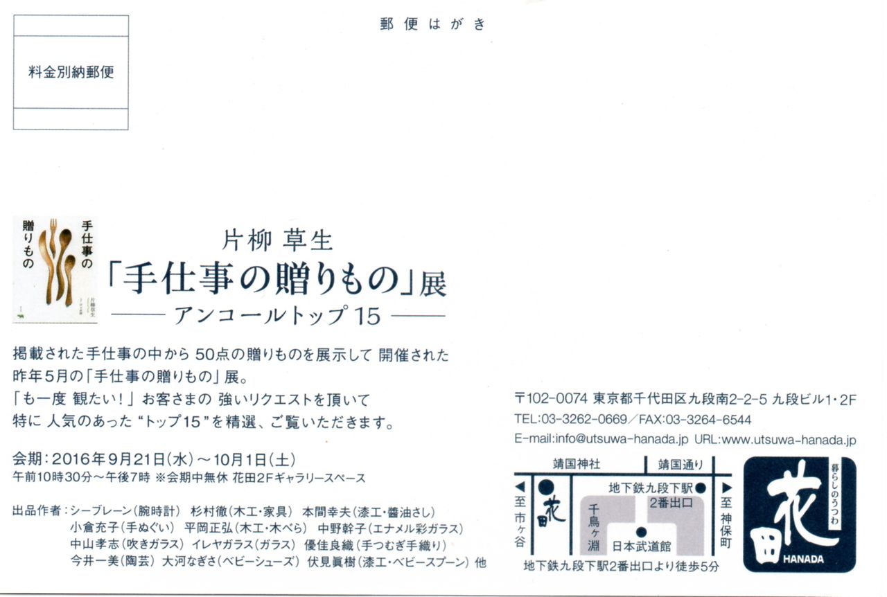 Tel:03-3262-0669 http://www.utsuwa-hanada.jp/hanada/gallery/saiji201609-2/